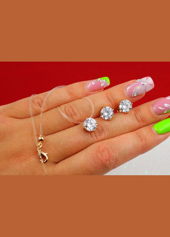 Набор Xuping Jewelry серьги гвоздики и леска с камешками 8 мм золотистый