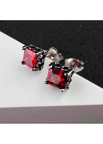 Готические серьги гвоздики изготовлены из нержавеющей медицинской стали. Натуральный цвет стали - серебристый. Медицинская сталь не темнеет, не окисляется и не вызывает аллергической реакции на теле. Украшены крупными квадратными красными камнями.