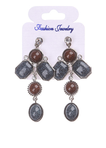 серьги гвоздики с камнем серого и коричневого цвета со стразами в стиле "Бохо-шик" 7х4х1 см
