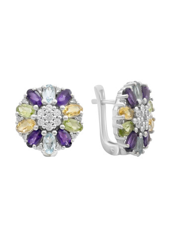 Серьги 925 пробы с натуральным аметистом 5.812ct, цитрином, хризолітом, топазом. Вес украшения 6,79г. Физический размер изделия (высота*ширина): 15х15 мм. Страна происхождения: Индия. Родированные украшения дольше сохраняют свое первоначальное состояние, а именно цвет и блеск металла. Все ювелирные изделия представленные на нашем сайте прошли внутренний контроль качества, а также контроль государственной пробирной службой Украины, на всех изделиях стоит соответствующая проба. К каждому ювелирному украшению прилагаются бирка с указанием всех параметров. Цвета изделий на сайте могут незначительно отличаться от реальных из-за особенностей цветопередачи экрана.