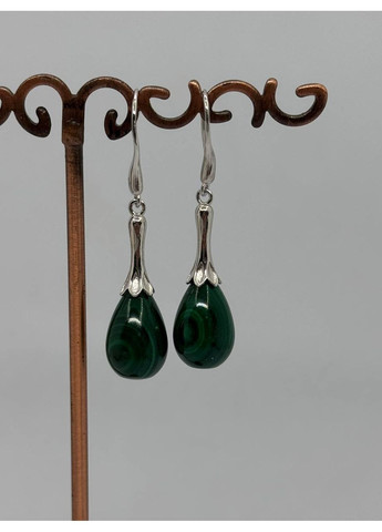 Эти роскошные серьги-подвески привлекают внимание благодаря глубокому, насыщенному зеленому цвету натурального малахита. Основной элемент — гладкая полированная капля (или груша) малахита, украшенная уникальными концентрическими узорами и полосами, которые делают каждое украшение неповторимым. Камень закреплен элегантной металлической фурнитурой серебристого цвета, что придает изделию завершенный и изысканный вид. Благодаря своей форме и яркому цвету, эти серьги являются эффектной классикой.