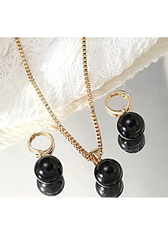 Каждодневная современная бижутерия комплект Жгут с кулоном-бусиной и серьги бусины кулона и сережек идентичны черного цвета Бижутерный сплав золотистого цвета бусины диаметром 1.2 см Жгут длиной 44 см + цепочка-удлинитель 5.5 см серьги - подвески бусинки длиной 3 см диаметр бусин 1.2 см