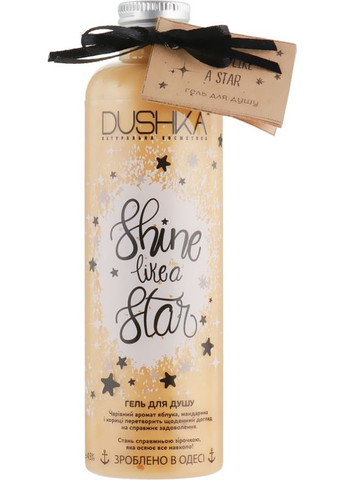 Украинский производитель Dushkaна набирает обороты по популярности и любви среди знатоков натуральной косметики. Всем известны эти средства для тела, волос и лица, которые заслужили уважение и восхищение натуральным продуктом, изысканным, а иногда очень вкусным ароматом косметики и продуманным дизайном упаковки. Утром, когда наш организм еще находится под роскошью недавнего сна, поможет взбодриться гель для душа «Сяй как звезда» бренда Dushka. А вечерний душ смоет с тела пыль и накопившуюся за день усталость расслабит и снимет стресс. Особенности геля для душа «Сяй как звезда»:- натуральные масла макадамии, миндаля и оливки смягчают и буквально наполняют эпидермис влагой и нежностью;- кожа становится эластичной, в тонусе;- гель успокаивает раздражение и уменьшает покраснение;- средство хорошо; мандариново-яблочный коктейль порадует душу и поднимет настроение, он останется на коже легкой фруктовой дымкой еще долгое время.