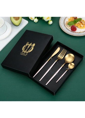 В комплект входят столовые ложки, вилки, ножи и чайные ложечки — по 6 штук каждого вида. Такой набор полностью закрывает потребности семьи или компании гостей за столом. Эргономичная форма и сбалансированный вес делают приборы удобными в использовании. Их легко мыть вручную или в посудомоечной машине.