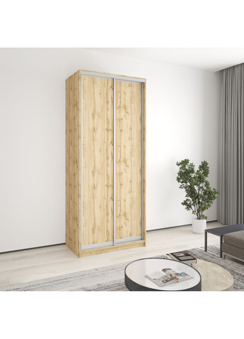 Шкаф-купе двухдверный MebelStar Стандарт AL 2ДСП 100x45x240 см Дуб тахо Двухдверный шкаф-купе MebelStar Стандарт – это стильное решение для современного интерьера. Он отличается практичностью, экономией пространства и функциональностью. Благодаря минималистичному дизайну в цвете «Дуб тахо» и алюминиевому профилю, этот шкаф легко впишется в любое помещение, от спальни до прихожей. Размеры Ширина: 100 см Глубина: 45 см Высота: 210 см Преимущества Функциональное наполнение: удобные полки и штанга для одежды позволяют оптимизировать хранение вещей. Компактность: подходит даже для небольших помещений. Вариативность использования: идеально для спальни, прихожей, кабинета или гостиной. Качественные материалы: фасады из ДСП обеспечивают долговечность. Раздвижная система шкафа-купе MebelStar Профиль выполнен из гальванизированного алюминия с изысканной бархатистой поверхностью, что придаёт шкафу неповторимый и эстетичный вид. Перемещающийся механизм обеспечивает широкий диапазон регулировки высоты, что позволяет легко компенсировать неровности пола. Ролики оснащены самосмазывающимися шарикоподшипниками, смазки которых хватает на весь срок эксплуатации. Верхний ролик изготовлен из прочной износостойкой пластмассы, а шина из мягкого материала делает работу механизма полностью бесшумной. Нижний ролик аккуратно интегрирован в профиль, обеспечивая дополнительную эстетику и надёжность конструкции. Почему стоит выбрать MebelStar? Шкафы-купе MebelStar – это практичное решение для современного интерьера. Они не только экономят пространство, но и гармонично дополняют любое помещение. Благодаря продуманному дизайну, шкаф становится неотъемлемой частью интерьера, выполняя основную функцию – вмещать максимальное количество вещей различного назначения: от подушек до женской бижутерии. Шкафы с раздвижными дверями остаются популярными уже многие годы благодаря своему эстетичному виду, функциональности и доступной цене. Фабрика MebelStar предлагает широкий ассортимент мебели с продуманными фасадами, которые могут стать как примером классической сдержанности, так и ярким дизайнерским акцентом. Выбирайте двухдверные шкафы-купе MebelStar в нашем интернет-магазине. Мы предлагаем широкий ассортимент мебели для дома: кровати , комоды , полки . Закажите шкаф-купе прямо сейчас! Наши менеджеры с радостью помогут в выборе идеального варианта и предоставят консультацию по подбору шкафа, который лучше всего подойдёт вашему интерьеру. Обратите внимание! Оттенок изделия на фотографии может отличаться от реального из-за особенностей цветопередачи монитором, настройки фотооборудования и других технических факторов.
