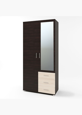 Шкаф прямой с зеркалом Бриз ШП-4 Венге + Дуб молочный Вместительный шкаф Бриз ШП-4 является частью изысканной коллекции Бриз от мебельной фабрики Эверест. Хорошо сочетается с другой мебелью, выполняя как эстетическую, так и практическую функцию. Универсальная модель оснащена одним отделом со штангой для вешалок и отделом с полками и зеркалом на фасаде двери. Также изделие укомплектовано тремя выдвижными ящиками, в которые можно поместить необходимые принадлежности или аксессуары. Оптимальные размеры позволяют установить шкаф в спальне, гостиной или прихожей и организовать удобное хранение большого количества предметов гардероба. Также шкаф Бриз ШП-4 можно купить без зеркала. Купить недорого шкаф Бриз ШП-4 Эверест можно в следующих цветах: Венге+Дуб молочный Дуб сонома+Трюфель Нимфея Альба Шкаф выполнен из экологически чистого ЛДСП (уровень эмиссии Е1) швейцарской компании Kronospan, поэтому подходит даже в детскую комнату. Габариты шкафа Бриз ШП-4 Эверест (Ш х Г х В) 100 х 52 х 210 см Не подошел размер – не проблема. Эта Серия позволяет выбрать модель с другими габаритами: Шкаф распашный Бриз ШП-2 (Ш х Г х В) 60 х 38 х 210 см Шкаф прямой Бриз ШП-4 (Ш х Г х В) 100 х 52 х 210 см Шкаф распашный Бриз ШП-5 (Ш х Г х В) 150 х 52 х 210 см СБОРКА И КОМПЛЕКТАЦИЯ Мебель доставляется в фабричной упаковке (гофрированный картон), в разобранном виде! В комплект поставки входит фурнитура для уборки, все технологические отверстия просверлены. Изделие комплектуется ключом для сборки (шестигранником). Для сборки вам необходимо: Крестовая отвертка Шестигранник (4 мм) Клей ПВА (если есть шканты) Молоток Остались вопросы или хотите дешево купить шкаф Бриз ШП-4 Эверест? Оформляйте заказ через корзину или жмите на оранжевую кнопку чата в правом нижнем углу экрана и наши специалисты мгновенно помогут Вам, ответив на все вопросы!