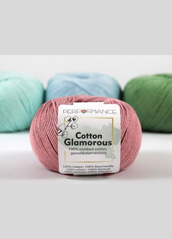 Пряжа Cotton Glamorous, Performance (Болгария) Состав: 100% мерсеризованный хлопок Вес мотка: 50 г Длина нити: 125 м Рекомендуемый размер спиц / крючка: 3,5 мм Количество в упаковке: 10 шт / 500 г Производитель: Performance, Болгария Описание: Cotton Glamorous — это высококачественная мерсеризованная пряжа из натурального хлопка, обработанная для получения блеска и гладкости. Подходит для вязания крючком и спицами, имеет мягкую и приятную текстуру, хорошо держит форму и сохраняет цвет после стирки. Рекомендуется для следующих видов изделий: Летняя одежда (топы, майки, платья, кофты) Аксессуары (шали, платки, шарфы) Детская одежда (безопасна и мягка для кожи) Домашний текстиль (подушки, салфетки, пледы) Лучше всего подходит для ручной стирки или деликатного режима. Преимущества: 100% натуральный состав Гипоаллергенная и экологичная Экономичный расход Удобна в работе Сохраняет блеск и цвет