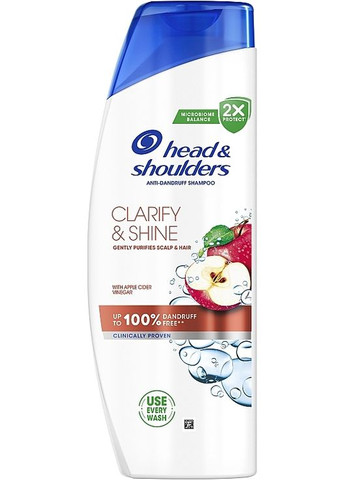 Знаете ли вы, что перхоть появляется снова и снова из-за несбалансированности микробиому кожи головы, нашей естественной системы защиты кожи? Шампунь Head&Shoulders от перхоти мягко очищает кожу головы от загрязнений. Этот шампунь для ежедневного использования с яблочным уксусом как для мужчин, так и для женщин, с ароматом свежего яблока и формулой микробиомного баланса, устраняющей первопричину перхоти, поддерживая сбалансированный микробиом кожи головы. Противодействует как видимой, так и невидимой лупе, высвобождая вдвое больше защитных ингредиентов, проникающих в поры, чтобы предотвратить возврат стойкой лупы. Шампунь имеет клинически проверенную, дерматологически протестированную формулу со сбалансированным рН, благодаря которой ваша кожа головы и волос остаются чистыми и свежими. - Эффективная защита и профилактика перхоти Клинически доказано, что при регулярном использовании шампунь предоставляет до 100% защиты от перхоти*, * видимых чешуек - Детокс-шампунь с яблочным уксусом. Противодействует жирности и перхоти глубоко в порах, даря свежесть волосам и коже головы - Восстанавливает блеск волос Мягко очищает кожу головы, даря волосам энергию и здоровый естественный блеск. - Дерматологически проверено. вашим волосам чувство свежести без перхоти