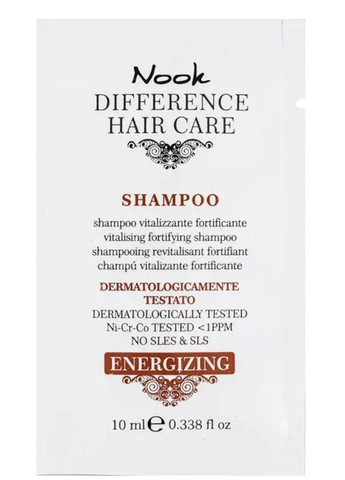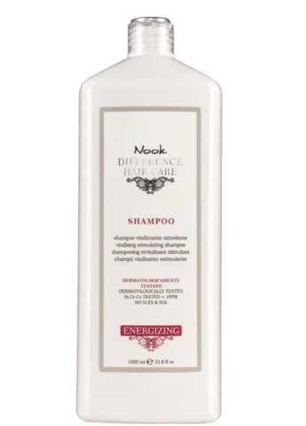 NOOK DIFFERENCE HAIR CARE Energizing Vitalising Stimulating Shampoo – это обновляющий стимулирующий шампунь, специально созданный для ухода за тонкими, ослабленными волосами, склонными к выпадению. Его уникальная формула с ценными активными компонентами укрепляет структуру волос, уменьшает выработку кожного сала и возвращает прядям жизненную силу. Основные преимущества: Очищает кожу головы и стимулирует кровообращение. Укрепляет волосяные фолликулы, уменьшая выпадение волос. Восстанавливает структуру поврежденных и ослабленных волос. Балансирует работу сальных желез. Придает волосам естественный блеск, мягкость и объем. Стимулирует рост новых, здоровых волос. Активные компоненты: Экстракт женьшеня – Известен своими стимулирующими свойствами. Улучшает кровообращение, укрепляет корни волос и способствует их активному росту. Экстракт крапивы – Помогает нормализовать работу сальных желез, очищает кожу головы, придает волосам свежесть и мягкость. Протеины пшеницы – Глубоко проникают в структуру волос, укрепляя их изнутри. Ментол – Обладает освежающим эффектом, стимулирует кровообращение и тонизирует кожу головы. Аромат: Свежий травяной аромат с легкими нотками ментола. Для кого этот продукт: Для тех, у кого тонкие, ослабленные волосы и кто столкнулся с проблемой сезонного или стрессового выпадения. Результат: Сильные, объемные и блестящие волосы со здоровым видом.