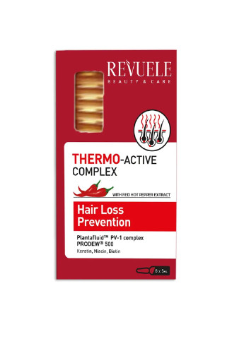 Особенности Thermo Active Complex Hair Loss Prevention от Revuele: - термоактивный комплекс разогревает кожу головы и усиливает приток крови к фолликулам; - останавливает выпадение волос; - повышает стойкость волос к внешним факторам; - питает и увлажняет кожу головы; - уменьшает ломкость; - придает прядям блеск и мягкость. Способ применения Нанесите содержимое ампулы на кожу головы легкими массирующими движениями. Оставьте на 30-40 минут и вымойте волосы шампунем. Для достижения наилучших результатов используйте 2-3 раза в неделю. Состав Aqua, Glycerin, Propylene Glycol, Hydrolyzed Keratin, Sodium PCA, Sodium Lactate, Arginine, Aspartic Acid, PCA, Glycine, Alanine, Serine, Valine, Proline, Threonine, Isoleucine, Histidine, Phenylalanine, Aloe Barbadensis Leaf Juice, Betula Alba Leaf Extract, Chamomilla Recutita Flower Extract, Panicum Miliaceum Seed Extract, Equisetum Arvense Extract, Salvia Officinalis Leaf Extract, Urtica Dioica Leaf Extract, Camelia Sinensis Leaf Extract, Arctium Lappa Root Extract, Lawsonia Inermis Extract, Humulus Lupulus Extract, Calcium Pantothenate, Niacin, Biotin, Phenoxyethanol, Xanthan Gum, Capsicum Frutescens Resin, Vanillyl Butyl Ether, Disodium EDTA, Citric Acid.