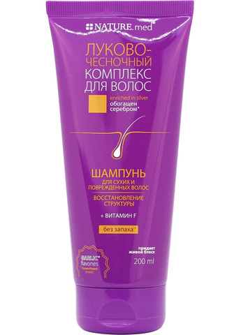 Описание Шампунь «Луковично-чесночный комплекс для волос. Для сухих и поврежденных волос» - NATURE.med Сухие, обезвоженные, поврежденные волосы требуют особого ухода, который дарит шампунь с богатой, питательной формулой. Украинская косметическая линия Nature.med представляет инновационное средство – шампунь для сухих, ломких и поврежденных волос. Косметический продукт бережно очищает волосы, не пересушивает их даже при ежедневном применении, защищает и приглаживает чешуйки кутикулы, придавая волосам мягкость и шелковистость. Формула средства, обогащенная ионами серебра, возвращает волосам естественный блеск, объем и эластичность. Шампунь способствует увлажнению, питанию и восстановлению структуры волос, защищая от последствий процедур стайлинга, предотвращает выпадение. Средство возвращает волосам силу и блеск, обновляет и восстанавливает их. Шампунь легко смывается, делая волосы мягкими и блестящими. Способ применения равномерно нанести шампунь на влажные волосы, массирующими движениями вспенить в течение нескольких минут и тщательно смыть теплой водой. При необходимости повторить. Состав Aq, Sodium Laureth Sulfate, Cocoamidopropyl Betaine, Dimethicone, Hydrolyzed Keratin, Polyqternium-7, Polyqternium-16, Cetrimonium Chloride, Carbomer, PEG-4 Distearyl, Dicaprylyl Ether, Coco-Betaine, Medium Taurate, Хидроксид хлорида, Niacin, Allium Cepa Extract, Allium Garlic Extract, Линолеический acid, Panthenol, Allantoin, 5-chloro-2-methylisothiazolin-3-one, 2-methylisothiazolin-3-one, benzyl alcohol, propyl EDTA, Bisabolol, Parfum.