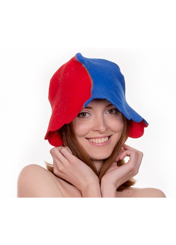 Банная шапка "Волна" изготовлена из натурального войлока, в составе которого овечья шерсть. Цвет красный с синим.