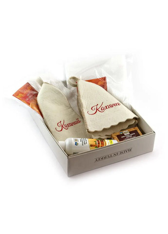 Набор для сауны и бани станет идеальным подарком. В набор входит: * Шапка натуральный войлок светло-серая Коханый 1 шт; * Шапка натуральный войлок светло-серая Кохана 1 шт; * Парео хб мужское 1 шт; * Парео хб женскиое 1 шт; * Мыло 75 грамм, в асортименте 1 шт на выбор (антицелюлитное, эвкалипт с медом, питательное, корица с кофе, дегтярное); * Ароматизатор "FS" 250мл., на выбор 1 шт (пихта-лимон, эвкалипт-мята); * Коробка подарочная 1 шт