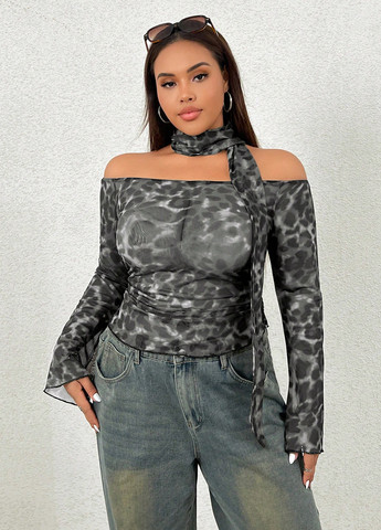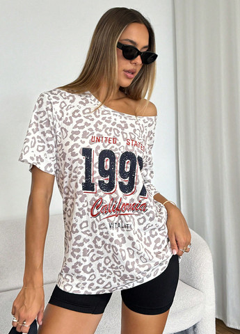 Женская футболка SHEIN Essence. Эта повседневная футболка свободного кроя с круглым вырезом и короткими рукавами украшена леопардовым принтом и буквенным узором. Футболка изготовлена из трикотажного полотна средней эластичности. Состав: 97% полиэстер и 3% эластан. Машинная стирка, не подвергать химчистке.