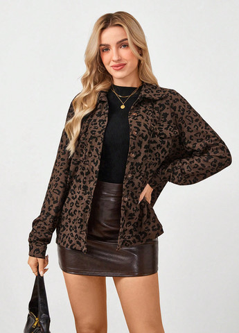 Женский комплект SHEIN Privé с леопардовым принтом - толстовка и джоггеры. Этот повседневный комплект состоит из толстовки с капюшоном и длинными рукавами, а также брюк-джоггеров в тон. Толстовка застегивается на молнию и имеет карман. Брюки-джоггеры без подкладки и имеют свободный крой. Комплект изготовлен из трикотажной ткани. Рекомендуется для температуры от 18 до 25 °C (от 63 до 77 °F). Машинная стирка или профессиональная химчистка.