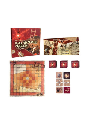 Настольная игра Катакомбы Одессы на украинском языке. Очень необычная и увлекательная игра. В комплекте двухстороннее поле, 105 тайлов, 4 ширмы и инструкция. Прекрасно подойдет для веселых игр с друзьями. Цель игры – найти выход из катакомб и не дать это сделать другим, строя и разрушая коридоры. Изготовлено из качественных и безопасных материалов.