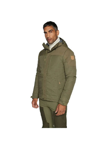 Легкая и удобная зимняя мужская куртка Fjallraven с G-1000 с синтетическим утеплителем. У нее есть фиксированный регулируемый капюшон, плотно прилегающий к голове и шее, несколько практичных карманов и удобные детали. Это отличный выбор, если вы ищете одежду для холодных и морозных дней. Она сможет легко противостоять влаге и ветру – вам будет тепло, сухо и комфортно, даже под кратковременным дождем. G-Loft Supreme – это синтетический наполнитель, обеспечивающий дополнительное тепло, когда вы находитесь в условиях повышенной влажности. Манжеты легко и быстро регулировать с помощью кнопок. Куртка застегивается на двустороннюю молнию, она прикрывается защитным клапаном (он закрывается на кнопки на подоле, груди и подбородке). Вы можете удобно хранить свои вещи в 6-ти карманах. Предусмотрены две вертикальные на груди и две по бокам. Эти карманы на молниях имеют крупногабаритные застежки, чтобы их можно было легко открывать и закрывать в перчатках. Также внутри есть два вместительных сетчатых кармана, они идеально подходят для хранения перчаток или телефона. Разделение можно легко регулировать за шнурок, чтобы куртка идеально на вас сидела. Назначение: для повседневной носки на зимой, путешествия. Особенности: - водостойкая и ветрозащитная - легкая и при этом теплая - с легким утеплителем из G-1000 Original, наполненная G-Loft Supreme - плотно прилегающий регулируемый капюшон убережет от ветра - двусторонняя передняя молния с удобными для перчатки застежками, прикрытые планками, а также карман для телефона и внутренний – содержит нетекстильные элементы животного происхождения – с пропиткой без фторуглеродов Технические характеристики: Материал: G-1000 Original: 65% полиэстер, 35% хлопок; G-1000® Lite: 65% полиэстер, 35% хлопок Подкладка: 100% полиамид Наполнитель: G-Loft Supreme: 100% полиэстер Вес наполнителя: 145 г/м² Вес: 1120 г (размер M) Для роста: 18 2 нагрудные, 2 для рук, внутренний карман, для телефона Материалы и технологии: Fjällräven G-1000 – ткань, разработанная Fjallraven. Она износостойка и долговечна, предназначена для ношения на улице. В сочетании с вневременным дизайном ткань позволяет создавать продукты, которые могут использоваться в течение десятков лет. Рекомендации по уходу: Стирка: 40°C (обычный процесс) Химчистка: не рекомендуется Отбеливание: не отбеливать Сушка: не сушить в стиральной машине Глажка: утюжка при температуре максимум 110 °C Стирка: стирать отдельно, не использовать белье кондиционер