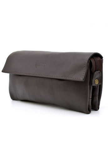 Клатч мужской кожаный GB-2801-3md TARWA коньячный Клатч мужской кожаный темно-коричневого цвета с блеском GB-2801, от украинского бренда TARWA. Модель на три отделения, с кожаным клапаном на магнитах Внутри в одном из отделений, имеется врезной карман. В другом, два слота под пластиковые карты или визитки, в виде кожаного кармашка. Между этими отделениями располагается плоское маленькое отделение. Клатч застегивается на общую молнию и сверху накрывается кожаным клапаном на магнитные кнопки. На задней стороне сумки есть кожаная плоская ручка-держатель. Аксессуар выглядит стильно и дорого. И будет полезен как для ежедневной носки под джинсы, так и для мероприятий, где нужен деловой образ.