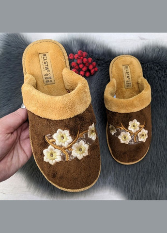 Женские комнатные тапочки Белста. С закрытым носком, коричневого цвета с вышивкой. Подошва полиуретановая - не стирается, не ломается, не трескается, не проседает. Махровые теплые домашние тапочки. Домашняя обувь высокого премиум качества! С минимальным уходом прослужат не один год! Украинская фабрика "Белста" основана в 2005 году, в г. Белгород-Днестровский. Является лидером в производстве домашней обуви для всей семьи в Украине. Продукция активно поставляется на Экспорт, что является свидетельством того, что вся продукция фабрики, является высочайшего качества и имеет все необходимые сертификаты. Для выбора своего размера, смотрите размерную сетку на данную модель: (замеры стельки от шва до шва) 37р.= 23,7 см 38р.= 24,5 см 39р.= 25-25,5 см 40р.= 26 см 41р.= 26,5 см