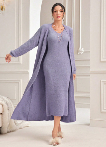 Костюм с круглым вырезом и свободным кроем идеально подходит для повседневной носки. Эластичная ткань обеспечивает комфорт и гибкость. Дизайн с пуговицами спереди придает нотку элегантности однотонному рисунку. Доступный в фиолетовом цвете. Идеально подходит для зимнего сезона.