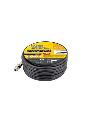 Шланг пневматический резиновый армированный MASTERTOOL 20 атм 8х15 мм 10 м (81-8461) Применяется для подключения к компрессору и пневматическому оборудованию. Особенности: • используется для подключения к компрессору и пневматическому оборудованию • может работать с пневмоинструментами, требующими высокое рабочее давление • трехслойная структура обеспечивает высокую прочность и устойчивость к механическим повреждениям • используется в широком диапазоне температур • рабочее давление 20 bar • наружный диаметр 15 мм • внутренний диаметр 8 мм Характеристики: Вес:1.44 кг Давление, бар:20 Внутренний диаметр, мм:8 Наружный диаметр, мм:15 Длина, м:10