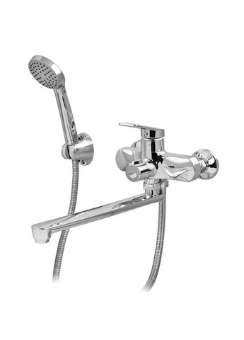 Смеситель для ванной Kroner KRM Elbe - C072 оснащен длинным поворотным изливом 350 мм и рычагом управления. Регулировка напора и температуры воды обеспечивает керамический картридж. Для приема душа есть гарнитур: душевая лейка диаметром 80 мм (1 режим), душевой шланг длиной 1500 мм и настенный держатель на 2 положения. Для переключения на душ/вылив достаточно повернуть дивертор на 90 °. В комплекте эксцентрики и декоративные розетки.