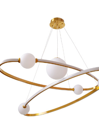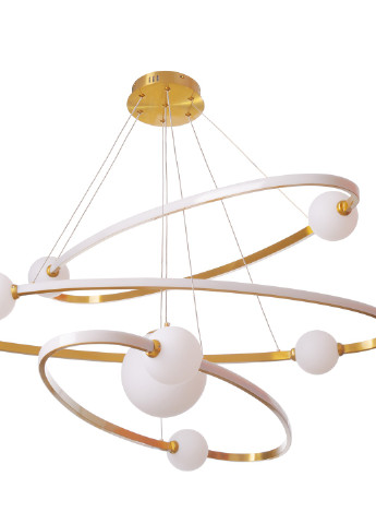 Светодиодная люстра BL-673S/108W G это трендовая модель, которая украсит собой холл, ресторан, выставочный зал или гостиную с высокими потолками. Этот светильник с оригинальным дизайном подойдет для базового освещения интерьеров в стиле хай-тек, модерн, минимализм и неоклассика. Мощность модели 108 Вт. Люстра имеет необычную конструкцию: к металлическому основанию на тонких шнурах крепятся два эллипса и один закрытый стеклянный плафон. На каждом эллипсе по два светодиодных источника света и боковая подсветка. Корпус золотистого цвета отлично сочетается с белыми круглыми плафонами. Встроенные светодиоды генерируют достаточно мощный световой поток с высоким индексом цветопередачи 80Ra. Световая отдача люстры 80 лм/Вт. К потолку светильник крепится с помощью монтажной планки. Уровень защиты корпуса от попадания внутрь пыли и влаги IP20. Люстра излучает приятное теплое свечение.