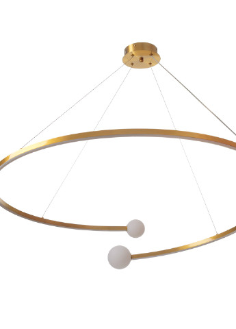 Светодиодная люстра BL-674S/36W G мало потребляет электроэнергии и генерирует достаточно мощный световой поток с теплым свечением. Модель с оригинальным дизайном отлично подойдет для гостиной, холла, ресторана и даже небольшого концертного зала. Мощность люстры 36 Вт. Люстра имеет необычную конструкцию: к металлическому основанию на тонких шнурах крепится золотистый круг, который в одном месте разрывается. В месте разрыва установлены два круглых закрытых плафона белого цвета. Кроме плафонов, свет излучает подсветка, которая находится на нижней части круга. Встроенные светодиоды создают световой поток с высоким индексом цветопередачи 80Ra. Световая отдача люстры 80 лм/Вт. К потолку светильник крепится с помощью монтажной планки. Уровень защиты корпуса от попадания внутрь пыли и влаги IP20.