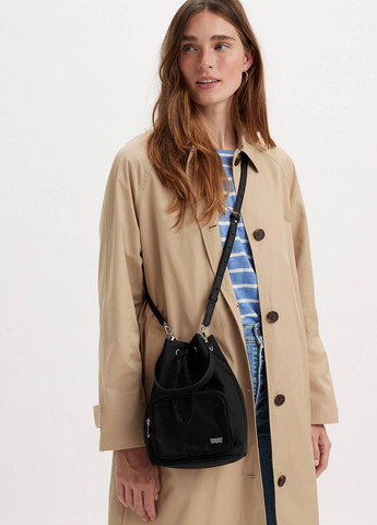 Сумка через плечо Levi´s. Минималистичная, но оригинальная, эта сумка имеет вместительный силуэт и легкий доступ ко всем вашим вещам: телефону, кошельку и многому другому. Класическая модель Bucket Bag. С просторным отделением. На лицевой стороне небольшой карман на молнии для мелочей. Затягивается на шнурок, который затягивается. Одна ручка сверху для переноски на плече или в руках и плечевой ремешок. Съемные, крепятся на карабин с двух сторон. Металлический логотип бренда спереди на кармане. Отличное качество. Размер универсальный: 24*17*11 см.