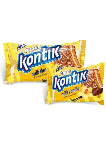 Два печенья с шоколадно-ванильным вкусом, соединены нежной кремовой начинкой с ароматом ванили и покрыты шоколадно-молочной глазурью.