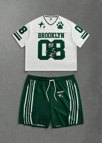 Комплект из двух предметов для подростка SHEIN. В комплект входят поло с короткими рукавами и шорты-бермуды. Поло застегивается на пуговицы спереди. Шорты спортивные. Слегка тянется. Машинная стирка, не химчистка.