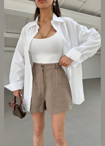 Полуобхват резинки на шортах 33 см, тянется до 65 см, полуобхват в бедрах 50 см, тянется до 68 см, длина сбоку – 27 см, высота посадки спереди – 29 см, сзади – 32 см.