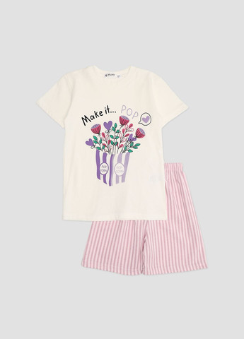 Пижама с шортами для девочки – идеальный выбор для комфортного сна и отдыха! Этот комплект сочетает стиль и удобство, позволяя маленькой моднице чувствовать себя легко и непринужденно. Верх пижамы – мягкая футболка с короткими рукавами. Шорты с эластичным поясом обеспечивают свободу движений и нежно облегают, не сковывая. Особенности изделия: Цвет: розовый, с декоративным принтом. Материал изготовления: трикотаж. Состав: 100% хлопок. Комплектация: футболка с коротким рукавом и шорты. Тип пояса шорт: резинка. Размерный ряд: 128 - 152. Сезон: лето. Страна производитель: Турция. Размер на бирке 128 / Украинский размер 128 Размер на бирке 134 / Украинский размер 134