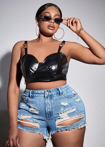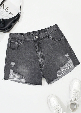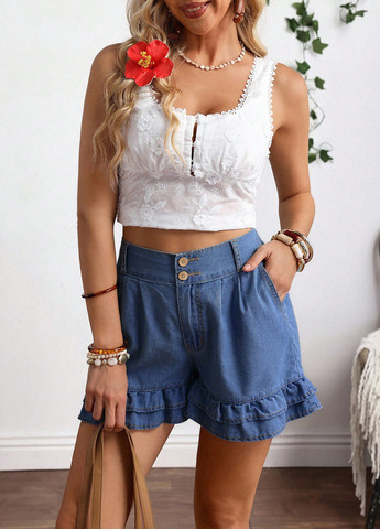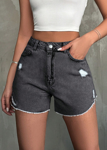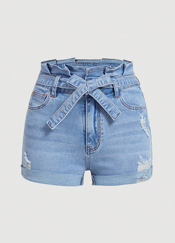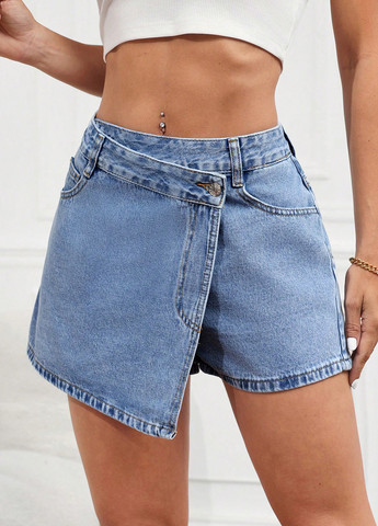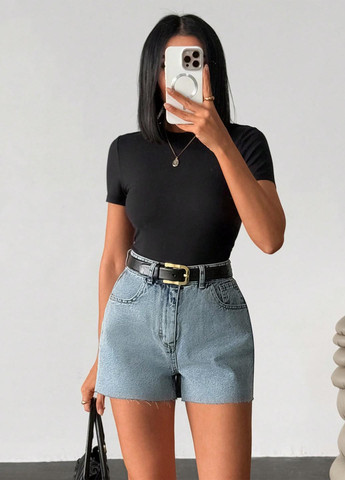 Шорты с 5 карманами из стираного эластичного хлопкового денима с высокой талией, молнией и пуговицей.