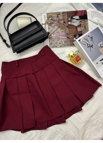 Цвет Бордовый / Высота посадки Высокая талия / Длина изделия Мини / Материал Костюмная