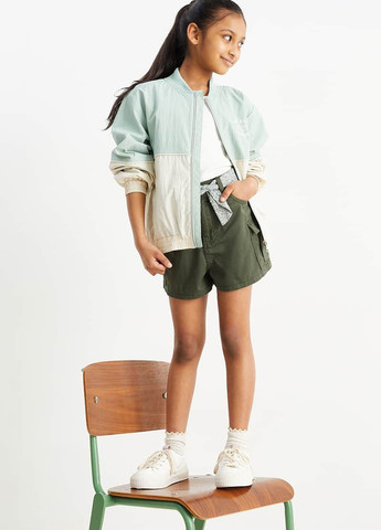 Шорты-карго из тканого материала с низкой талией на резинке, застежкой на молнию с пуговицей и карманами с клапанами на штанинах. ***Размер - 140см Полуобхват пояса - 29,00 см Длина изделия - 22,50 см Полуобхват бедер - 39,00 см Возможно повреждение бирки