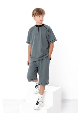 Холст: двунитка однотонная Состав полотна: 80% хлопок, 20% полиэстер Рост: 140–170 см Подростковый комплект для мальчика (футболка + шорты) — стильное и комфортное решение для ежедневной носки. Изготовлен из прочной двунити, сохраняющей форму и цвет после стирки. Футболка с коротким рукавом, стоячим воротником и молнией имеет свободный крой и современный спортивный стиль. Шорты до колена с резинкой на поясе и боковыми карманами обеспечивают удобство и свободу движений. Идеальный выбор для прогулок, школы и активного отдыха.