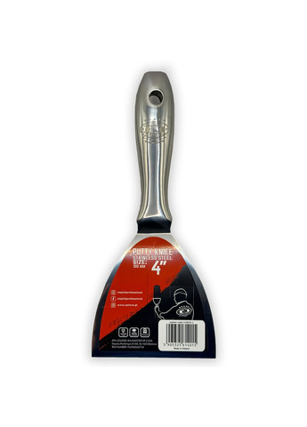 Малярный шпатель – лучше всего подходит для финишной отделки стен. С помощью малярного шпателя выполняют следующие виды работ: - выравнивание неровностей после предварительного нанесения шпатлевки; - забивание вмятин и трещин; - шпатлевка конструкций сложной формы; - маскировка швов между листами гипсокартона. Лезвие выполнено из высококачественной нержавеющей стали с двусторонней шлифовкой и зеркальной полировкой. Толщина лезвия от 1,5мм до 0,5мм, выполненная на уменьшение от центра к основанию, для обеспечения правильной точки изгиба посреди лезвия. Эргономичная полая металлическая ручка.