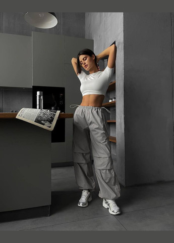 Цвет Серый / Материал Плащевка / Фасон Карго / Высота посадки Высокая талия / Узор Однотонный