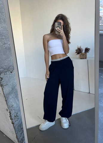 Цвет Темно-синий / Материал Хлопок / Фасон Палаццо / Высота посадки Высокая талия / Узор Надпись