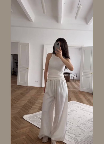 Цвет Молочный / Материал Хлопок, Трикотаж / Фасон Палаццо / Высота посадки Высокая талия