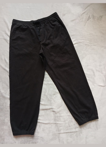 Мужские брюки свободного кроя р. M (ст. 642). Цвет: чёрный. Состав: 81% хлопок, 19% gerecycled. - Полуобхват пояса – 43 см, тянется до 50 см. - полуобхват бедер – 60 см, тянется до 63 см - Посадка перед – 32 см - посадка зад – 42 см - Шаг – 78 см, - полная длина - 106 см, - Полуобхват штанины внизу – 20 см.