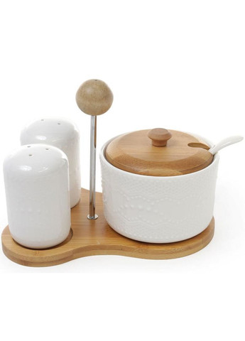 Набор спецовников Nouvelle Home — это идеальное решение для тех, кто ценит стиль и функциональность на своей кухне. Этот элегантный комплект включает сахарницу, солонку и перечницу, которые удобно размещаются на натуральной бамбуковой подставке. Изготовленные из высококачественного фарфора, эти аксессуары не только красивы, но и практичны. Сахарница объемом 300 мл с бамбуковой крышкой и фарфоровой ложечкой идеально подойдет для хранения сахара, а солонка и перечница обеспечат легкий доступ к специям во время приготовления блюд. Классический белый цвет фарфора гармонично впишется в любой кухонный интерьер, добавляя изысканности и стиля. Преимущества набора: Элегантный дизайн: Классический белый цвет и натуральные бамбуковые элементы делают набор стильным дополнением к любой кухне. Качество материалов: Фарфор и влагостойкий бамбук обеспечивают долговечность и легкость в уходе. Удобство использования: Все элементы набора удобно размещаются на подставке, что позволяет экономить место и поддерживать порядок на кухне. Функциональность: Сахарница, солонка и перечница в одном наборе — идеальное решение для сервировки стола. Этот набор предназначен для всех, кто любит готовить и ценит эстетику на кухне. Он станет отличным подарком для домохозяек, кулинаров и любителей стильного оформления интерьера. Используйте набор Nouvelle Home для создания уютной атмосферы во время семейных обедов или дружеских встреч. Набор спецовников Nouvelle Home — это не только практичное, но и эффектное украшение вашего стола, которое подчеркнет ваш вкус и внимание к деталям. Сделайте вашу кухню местом, где стиль встречается с функциональностью!