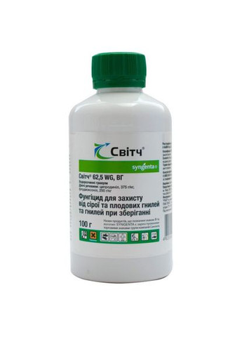 Фунгицид Свитч 62,5 WG в.г. 10 г – фунгицид для защиты от серой и плодовой гнили и других болезней. Препарат содержит два действующих вещества – флудиоксонил и ципродинил, которые обеспечивают двойное воздействие на возбудителя болезни и надежную защиту растения. Свитч оказывает контактно-проникающее и профилактически-искоренительное действие, поэтому защищает растение на четырех этапах развития возбудителя болезни: при прорастании конидий, начале роста мицелия патогена, при проникновении патогена в клетку, а также он останавливает рост мицелия в клетке. Использование препарата Свитч существенно улучшает качество плодов при хранении и транспортировке. Свитч также применяют на капусте, спаржевой фасоли, малине и других ягодниках. Лечебное действие длится 2 суток, защитное - 10-12 дней. Фунгицид Свитч имеет следующие преимущества: Двухкомпонентный фунгицид контактно-проникающего действия. Контроль главных возбудителей болезней, вызывающих гниение плодов и ягод при хранении (плодовая гниль, серая гниль, другие болезни). Короткий срок ожидания. Препарат, который удачно защищает плоды и ягоды от комплекса болезней (монилиоз, клястероспориоз, кокомикоз, вьющиеся листья персика, парша и различные виды пятнистости) во время вегетации. Улучшает лежкость плодов при хранении. Безопасный для пчел, полезных насекомых и окружающей среды. Малотоксический, безопасный для людей (ЛД50>3000 мг/кг). Рекомендации по применению Пакет 10 г развести в 5–10 л воды для приготовления рабочего раствора. Обработки проводят дважды за сезон: клубника – первое опрыскивание в начале цветения, второе – после массового цветения; плодовые деревья - за 15-20 дней до уборки урожая с интервалом 7-10 дней; розы – в начале бутонизации. Применение: Клубника: 10 г на 5л воды; 5 л/сотка; Серая гниль, мучнистая роса, белая и бурая пятнистость. Груша, абрикос, персик, слива, черешня: 10 г на 10 л воды; 2–5 л/дерево; Монилиоз, сизая плесень, фузариозная гниль, альтернариоз, серая гниль. Томаты огурцы (откитый и закрытый грунт): 10 г на 5 л воды; 5 л/сотка; Серая гниль, альтернариоз, сизая плесень. Роза (откитый и закрытый грунт): 10 г на 5–7 л воды; 0,5 л/куст; Фузариозная, альтернативная и серая гнили. Виноградники: 10 г на 5-7 л воды; 1,5–2,0 л/куст; Серая гниль. Спаржевая фасоль, овощной горошек: 10 г на 5-7 л воды; 5–7 л/сотка; Серая и белая гнили, аскохитоз. Голубика: 10 г на 10 л воды; 1,5–2,0 л/куст; Серая гниль. Максимальное количество обработок за сезон – 2. Срок ожидания после обработки: клубника – 7 дней; томаты, огурцы – 10 дней; плодовые – 15–20 дней; розы – 15 дней.