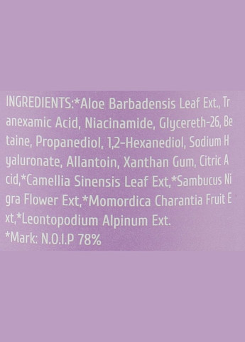 Описание Сыворотка с транексамовой кислотой и ниацинамидом для лица и шеи Станьте обладательницей идеально ровного тона лица без пигментации, постакне и покраснения просто благодаря сыворотке с транексамовой кислотой и ниацинамидом для лица и шеи от бренда Cos De BAHA. Активная формула направлена на уменьшение пигментации, следов от акне и мелазмы, которые могут быть особенно стойкими, а также снижение чувствительности кожи к ультрафиолетовому излучению. Добавьте к этому противовоспалительное, регенерационное, увлажняющее и антиоксидантное действия, и вы получите идеальное средство для поддержания здорового вида кожи. пигментации, освещает уже существующую и выравнивает тон лица;- экстракт алоэ вера оказывает увлажняющее, питательное, очищающее действия, ускоряет заживление микроповреждений, нормализует обменные процессы в клетках, защищает от неблагоприятных внешних факторов;- ниацинамид восстанавливает, обезвоживание, снимает воспаление, эффективно борется с акне, освещает пигментацию и постакне, сужает поры, улучшает тон лица, обладает антиоксидантными свойствами; успокаивает воспалительные процессы, снимает покраснение, повышает иммунитет эпидермиса, защищает его от негативного влияния различных внешних факторов, а также замедляет процессы старения; - экстракт бузины нейтрализует свободные радикалы, укрепляет иммунитет, успокаивает воспаление; и противовоспалительные свойства, эффективный в борьбе с экземой, псориазом и фурункулами, снимает раздражение, повышает упругость эпидермиса; - экстракт эдельвейса оказывает антиоксидантное, смягчающее и противовоспалительное действия, защищает от повреждений и замедляет процессы старения. Способ применения Нанести несколько капель на лицо массирующими движениями после умывания и использования тонера. Дать впитаться. Затем нанести крем или ночную маску. Предварительно рекомендуем произвести тест на аллергическую реакцию. Состав Aloe Barbadensis Leaf Ext., Tranexamic Acid, Niacinamide, Glycereth-26, Betaine, Propanediol, 1,2-Hexanediol, Sodium Hyaluronate, Allantoin, Xanthan Gum, Citric Acid, Camellia Sinensis Leaf Ext, Charantia Fruit Ext,*Leontopodium Alpinum Ext. *Mark: N.O.I.P 78%