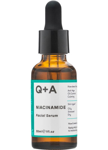 Восстановить, успокоить, укрепить молодую и зрелую кожу лица поможет сыворотка ниацинамида Niacinamide Serum от британской марки Q+A. Средство имеет на 94,8% натуральный состав, не содержит алкоголя, отдушек и не тестируется на животных. Главный компонент сыворотки – ниацинамид, обладающий такими же свойствами, как керамиды, гиалуроновая кислота и ретинол. В сочетании с алантонином этот компонент помогает сбалансировать цвет лица, убирая пигментные пятна и следы от постакне. Сыворотка также работает над укреплением кожного барьера, увлажняет эпидермис, сужает поры и нормализует выделение себума. Средство быстро впитывается, не оставляя жирный блеск. Подходит для любого типа кожи, даже чувствительного. Преимущества сыворотки с ниацинамидом Niacinamide Serum Q+A: В составе – 94,8% натуральных ингредиентов Веганский продукт, без алкоголя, парабенов, масел Имеет аналогичное с гиалуронкой, кемидами и ретинолом действие. Раздражение Способ применения: Наносите Niacinamide Serum Q+A на очищенную кожу лица утром и вечером. После сыворотки используйте увлажняющий крем. Желательно из этой же серии. Состав: Aloe Barbadensis (Aloe Vera) Leaf Juice, Propylene Glycol, Aqua (Water), Niacinamide, Betaine, Glycerin, Pentylene Glycol, Sodium Hyaluronate, Allantoin, Biosaccharide Gum-1, Cucumis Melo (Melon) Fruit Fruit) Fruit Extract, Ananas Sativus (Pineapple) Fruit Extract, Prunus Persica (Peach) Fruit Extract, Citrus Sinensis (Sweet Orange) ) Fruit Extract, Olea Europaea (Olive) Extract, Maltodextrin, Xanthan Gum, Sodium Gluconate, Phenoxyethanol.