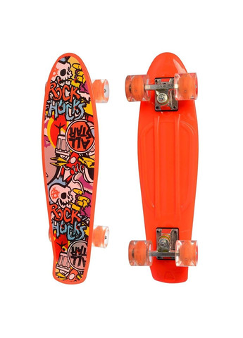 Пенни борд - это яркий и стильный вид транспорта для ребёнка. Благодаря своим размерам и небольшому весу скейтборд достаточно быстрый и легкий в освоении. Дека скейта изготовлена из жесткого пластика с антискользящей поверхностью и оформлена ярким рисунком. Колеса скейта выполнены из полиуретана, что делает катание бесшумным. Каждое колесо светится во время движения. Подшипники типа ABEC 7. Материал подвески – алюминий. Максимальная нагрузка: 70-80 кг, Размеры: Дека: 56х14,5 см, Высота от пола: 10 см, Диаметр колес: d=6 см.