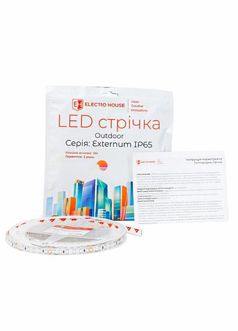 Светодиодные ленты серии Externum IP65 отличаются высокой яркостью и равномерностью освещения благодаря высокой плотности светодиодов. LED лента содержит 120 диодов на метр. Ее можно использовать в помещениях с повышенной влажностью, запыленностью или вне помещений. Лента помещена в водонепроницаемую основу из прозрачного силикона и имеет степень защиты IP65. На обратную сторону нанесен качественный двухсторонний скотч 3М для надежного монтажа на поверхность. Она используется для решения самых разнообразных задач интерьерного и экстерьерного дизайна, для создания уличной рекламы и организации основного освещения. Это создание световых акцентов на различных архитектурных объектах и их подсветка, подсветка витрин, стеллажей, мебели, зеркал, ступенек, рекламные световые надписи и конструкции, подсветка для автомобиля, подсветка или основное освещение в ванной комнате или другом помещении с повышенной влажностью. Вариантов применения светодиодной ленты EH-STR3IP намного больше, и они ограничены только Вашей фантазией. LED лента 12Вт 24В SMD2835 120 диодов, холодный белый 6500К, серия Externum IP65 , гарантия 3 года бренда Electro House относится к премиум классу, отличается долговечностью и имеет гарантию 3 года. Все электрические соединения при эксплуатации вне помещения или в помещении с повышенной влажностью должны быть хорошо изолированы и защищены от внешних неблагоприятных воздействий, а сама светодиодная лента защищена от прямого попадания воды. Нужно избегать непосредственного погружения изделия в воду. Можно использовать алюминиевый профиль для дополнительной защиты и эффективного охлаждения, это существенно увеличивает срок эксплуатации и позволяет организовать световое акцентирование или создавать разнообразные световые эффекты. Стоит уделить внимание подбору блока питания – для эксплуатации при повышенной влажности он должен быть герметичным, то есть иметь класс защиты не ниже IP65 и иметь запас мощности не менее 20%, предпочтительно чтобы запас был больше. *Цена указана за 1 метр. *Эта светодиодная лента продается кратно пяти метрам.