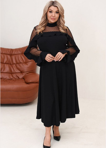 Graceful Ruffle Midi – это приталенное платье меди изготовленное из приятной ткани креп-дайвинг – стильный и элегантный выбор для любого события. Ее уникальный крой подчеркивает фигуру, а расширенный низ придает легкость и динамичность. Рукава и декольте выполнены из прозрачной сетки с изысканным узором в горошек, что придает образу нотку изящества. Дополнительным акцентом являются рюши, выполненные из основной ткани, украшающие рукава, создавая гармоничный и женственный вид. Горловина платья придает завершенности и делает модель универсальной для разных случаев – от романтических встреч до торжественных мероприятий. Доступна в трех изящных цветах: классическом черном, глубоком изумрудном и ярком красном, что позволяет выбрать подходящий оттенок вам.