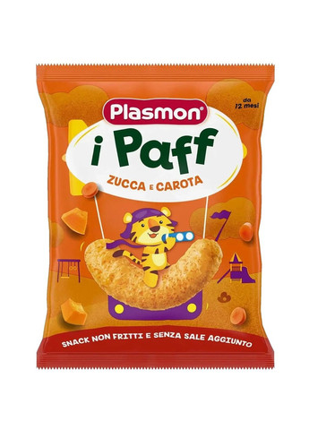 Снеки кукурузные Plasmon (Плазмон) Baby Puffs с тыквой и морковью – вкусный перекус на любой случай в удобном формате. Продукция торговой марки Plasmon производится в Италии по уникальным рецептам, а происхождение каждого ингредиента проверяется в соответствии со стандартом Oasi nella Crescita. Благодаря опыту в области питания, накопленному более чем за 120 лет, компания смогла создать собственную формулу для заботы и сопровождения младенцев лучше всего на всех этапах жизни. Plasmon предлагает только ингредиенты высшего качества, которые тщательно отобраны и сочетаются в простых сбалансированных рецептах, разработанных для вашего ребенка. Основные преимущества: изготовлены из отборных ингредиентов имеют правильную хрусткость и приятный вкус изготовлены для маленьких ручек, что делает их не только вкусными, но и комфортными для ребенка. употребление Plasmon Paff должно быть частью разнообразной и сбалансированной диеты и здорового образа жизни без красителей, консервантов и глютена не жареные и без добавления соли Способ применения: снеки готовы к употреблению. Можно есть в сухом виде или с чаем, молоком или соком. Предупреждение Перед началом применения снеков проконсультируйтесь с врачом. Вводя в рацион ребенка с аллергией новый продукт, убедитесь, что малыш переносит все его ингредиенты. Кормите ими ребенка после того, как он уже привык употреблять твердую пищу. Не оставляй ребенка одного во время еды. Не давайте снеки ребенку лежа. Характеристики Производитель: Plasmon, Италия. Рекомендовано для детей с 12 месяцев.